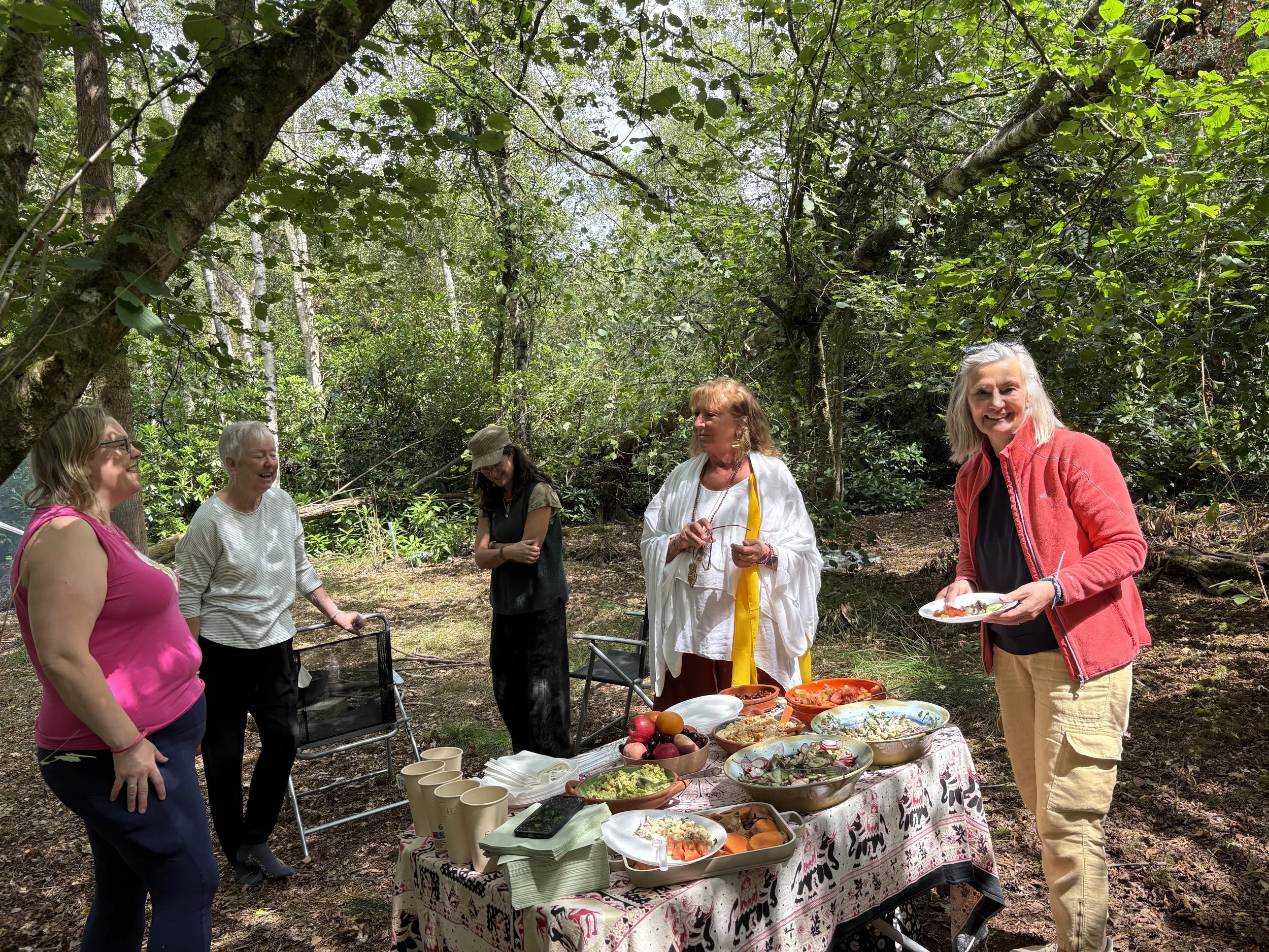 As we move into the heart of the day, you will be nourished with a seasonal, nourishing vegan lunch, lovingly prepared by Jo Ann from Green Mint, our dedicated vegan chef. This is a moment to rest, integrate, connect, while being held within the peaceful woodland setting.